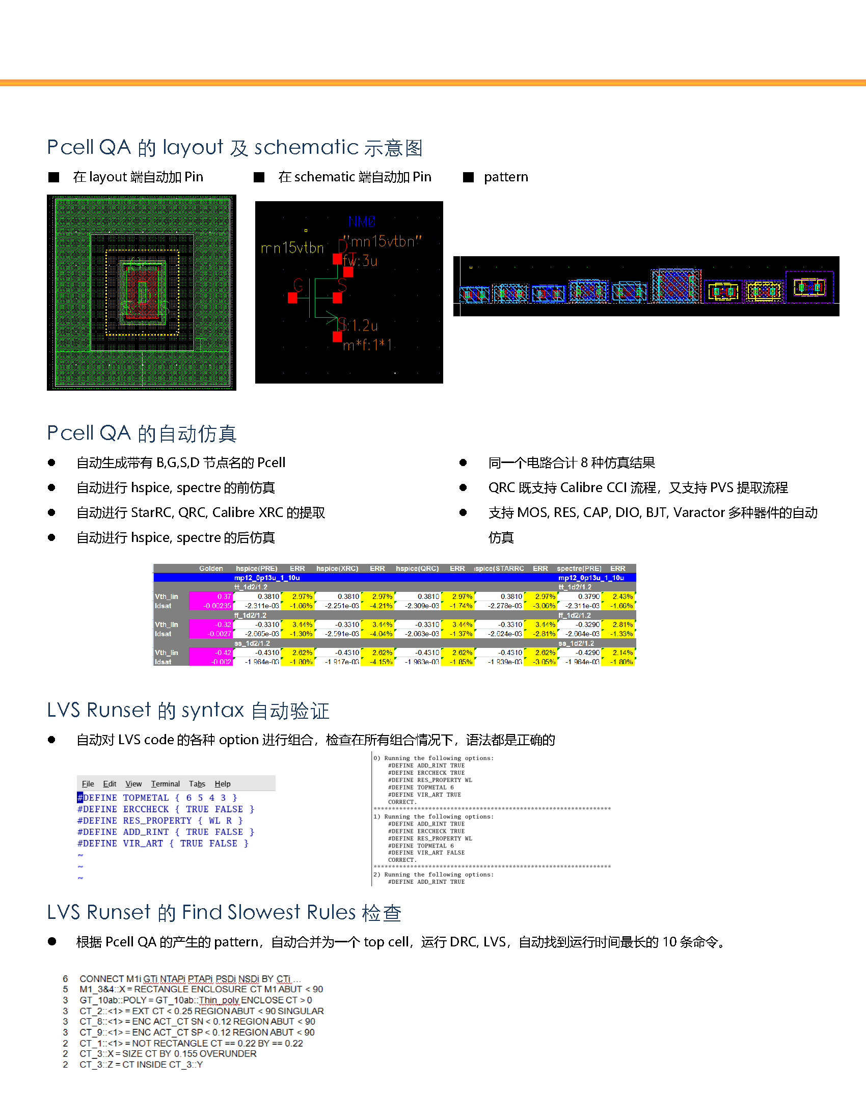 ● DRC Runset/LVS Runset/RCX Runset/Pcell 开发及QA服务PdkDev&QaService