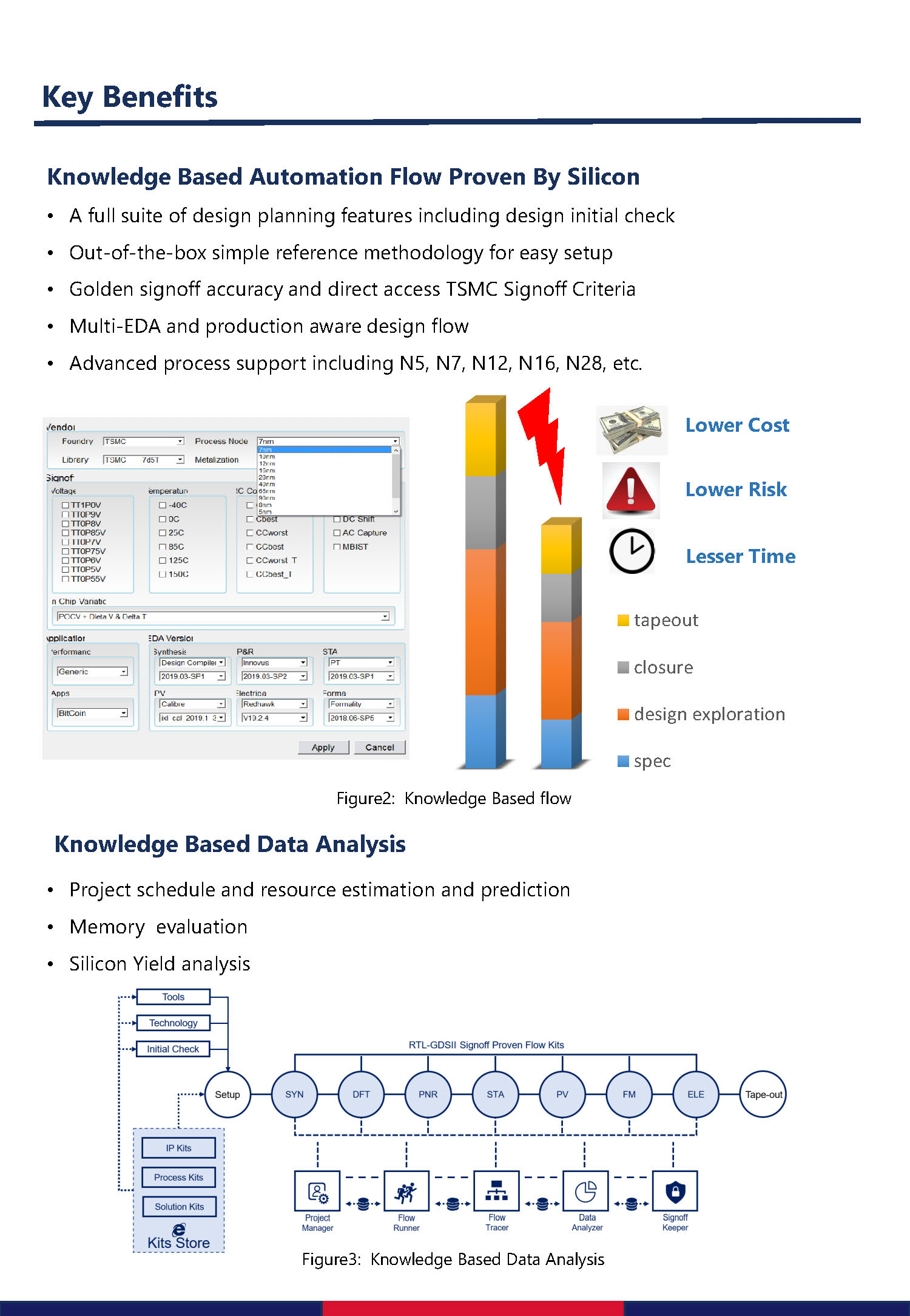 平台是由真正的资深芯片设计师开发的基于知识和经验分享的平台,并通过不同的芯片应用(物联网、HOC、AI等)和400多个Tapeout的验证,从成熟的工艺节点到今天的领先工艺技术的都有大规模的量产。其是专门为全面的设计需求而设计的,覆盖项目评估、执行、管理和数据分析,帮助改进项目的资源使用计划,节约成本,降低风险。